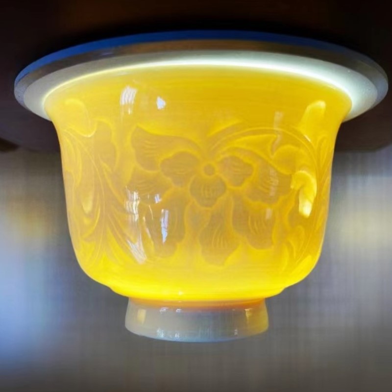 工藝:純手工拉坯、剔花,高溫燒制,24K純金鑲嵌